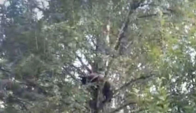 По информации очевидцев, медведь поднялся на дерево возле дороги в Гурьевском районе. Агрессии животное не проявляло, а просто находилось на ветках и осматривало окружающую территорию.
