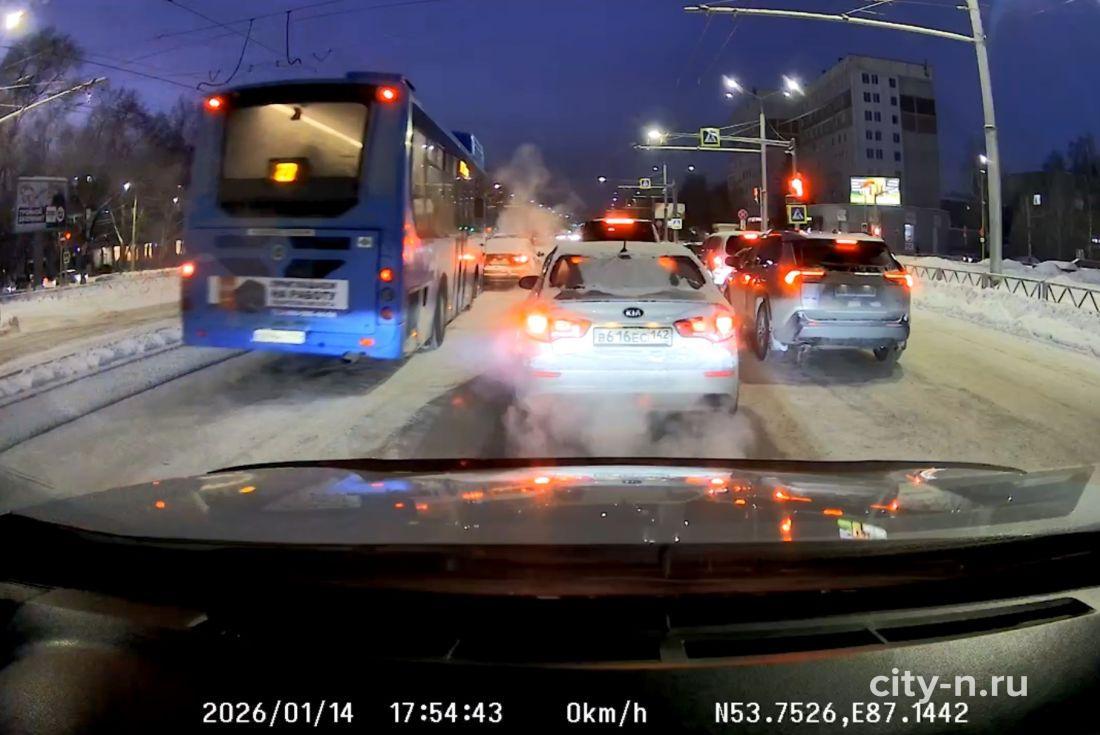 В Новокузнецке автобус проехал на красный светВодитель автобуса маршрута №27 в Новокузнецке совершил проезд на запрещающий сигнал светофора. Инцидент был заснят на видео местным жителем.