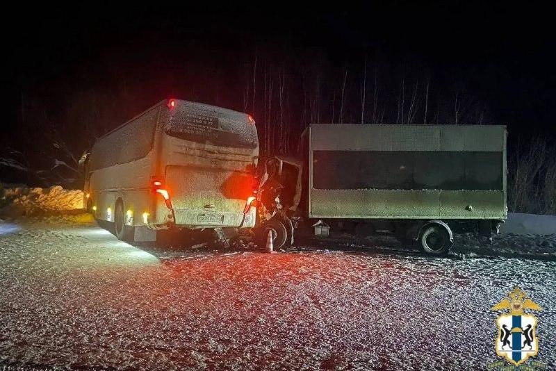 Лобовое ДТП автобуса Кемерово — Толмачево в Новосибирской областиЧетверо человек пострадали в результате столкновения междугороднего автобуса с грузовиком в Тогучинском районе